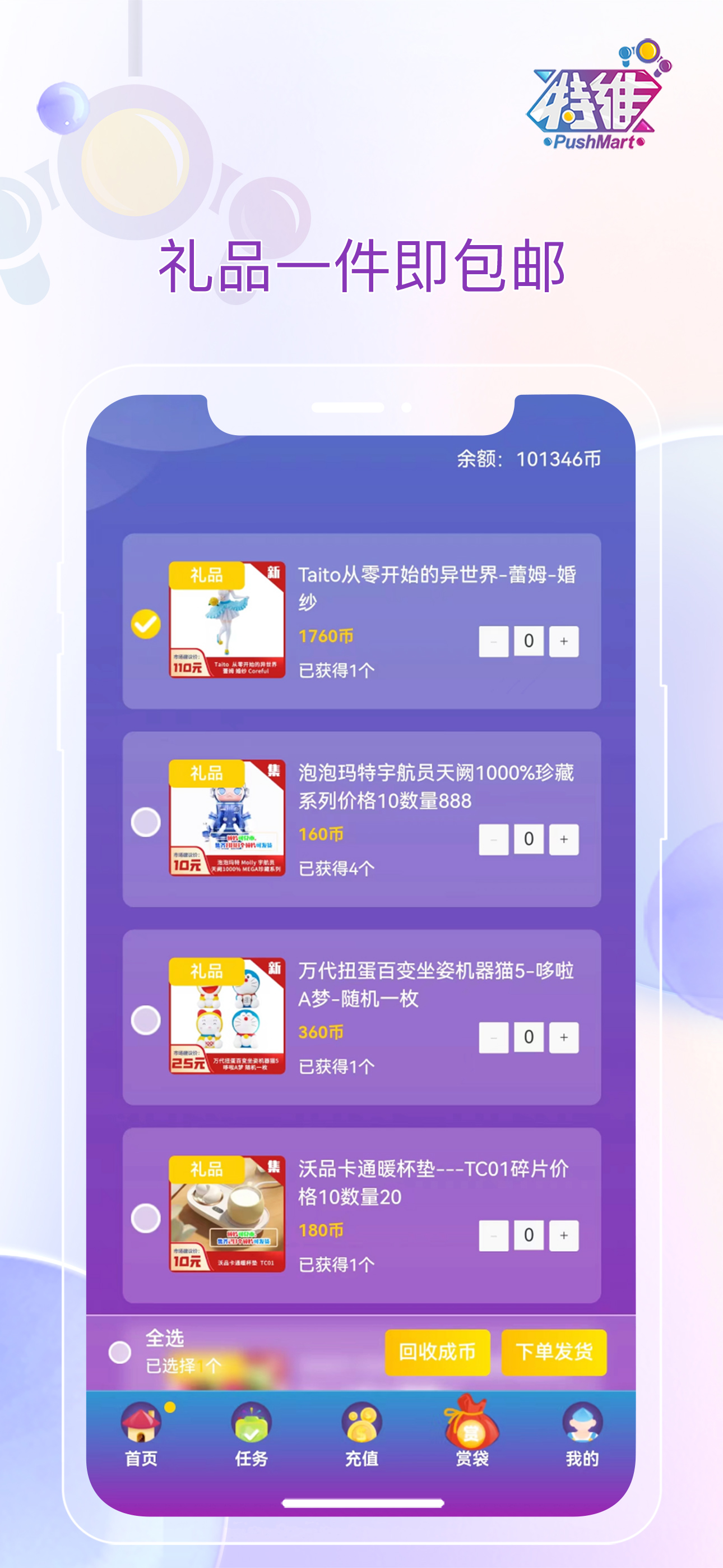 ①全场一件即包邮,无门槛无要求。APP战略合作德邦快递及顺丰速递,保证所有玩家都可享受找到礼品物流的高品质服务。
