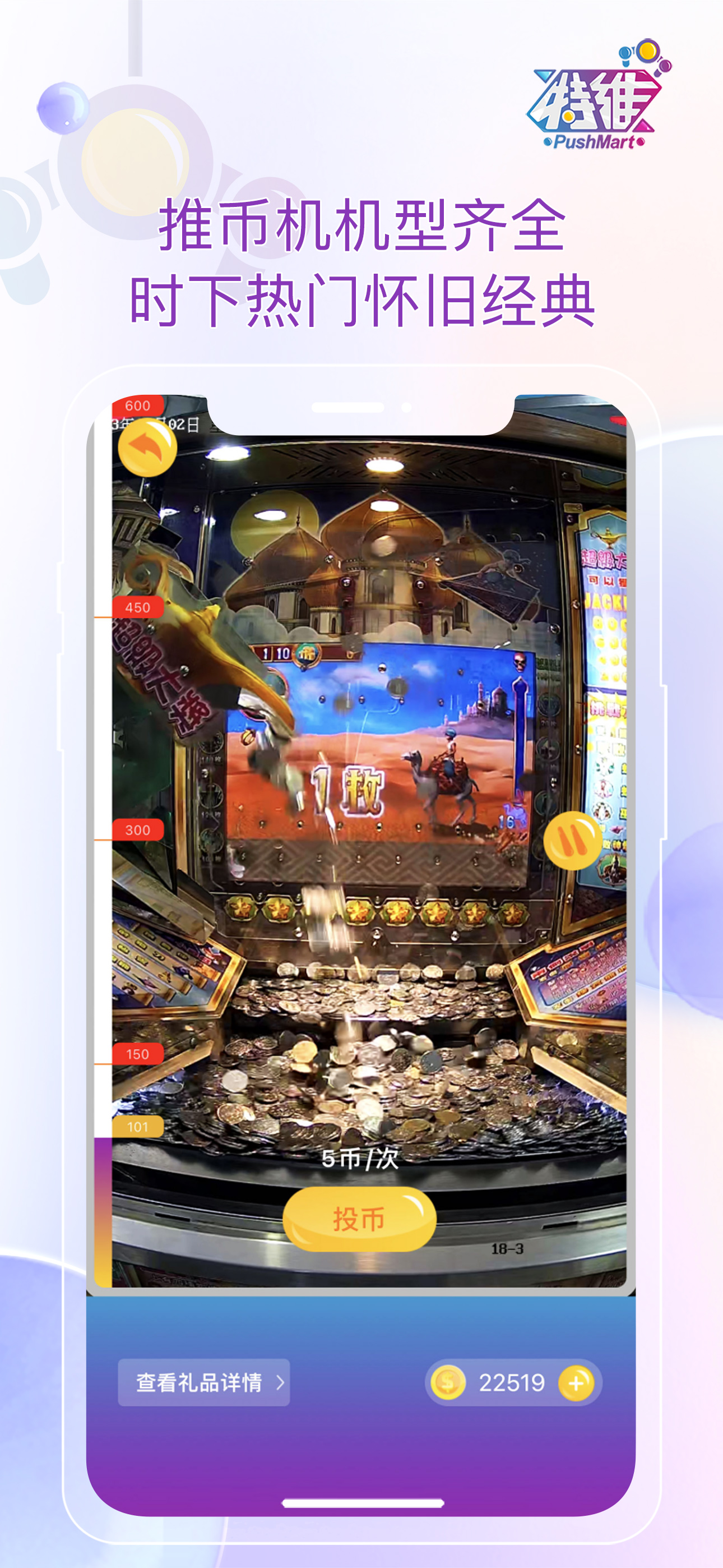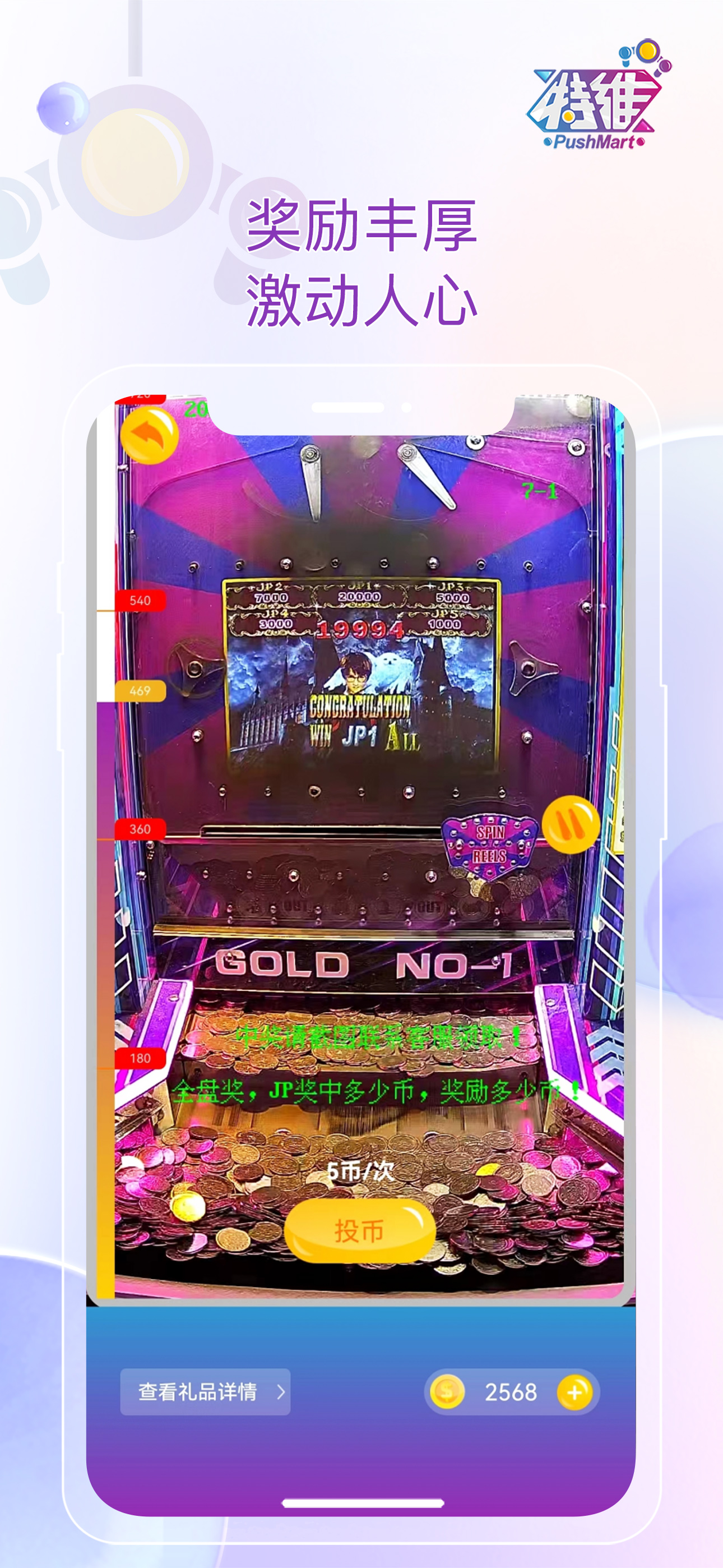 ④搜罗时下实体电玩城火热礼品机型,天空之塔、黄金一号、魔术师等机型。APP内机型齐全,玩法多样。